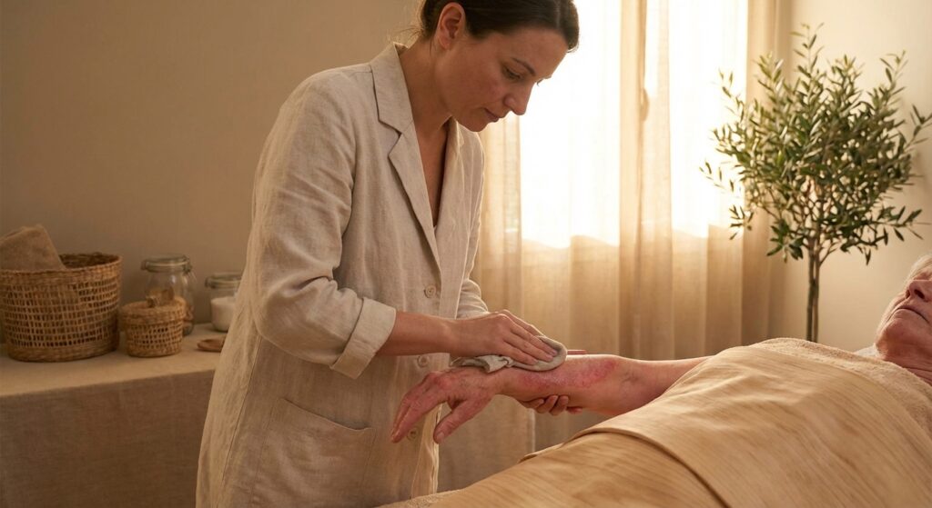 - Brûlures liées à la radiothérapie : les patients en traitement contre le cancer subissent souvent des irritations cutanées importantes. De nombreux services hospitaliers orientent d’ailleurs vers des coupeurs de feu.